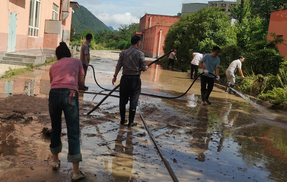 在組織自救的同時,公司黨委心系周邊群眾,迅速組建“黨員志愿服務隊”,奔赴受災農戶家中開展幫扶。志愿者們幫助農戶清理院落內的積水和淤泥,并耐心安撫農戶情緒,詳細了解他們的需求,用暖心服務為受災群眾撐起“保護傘”。